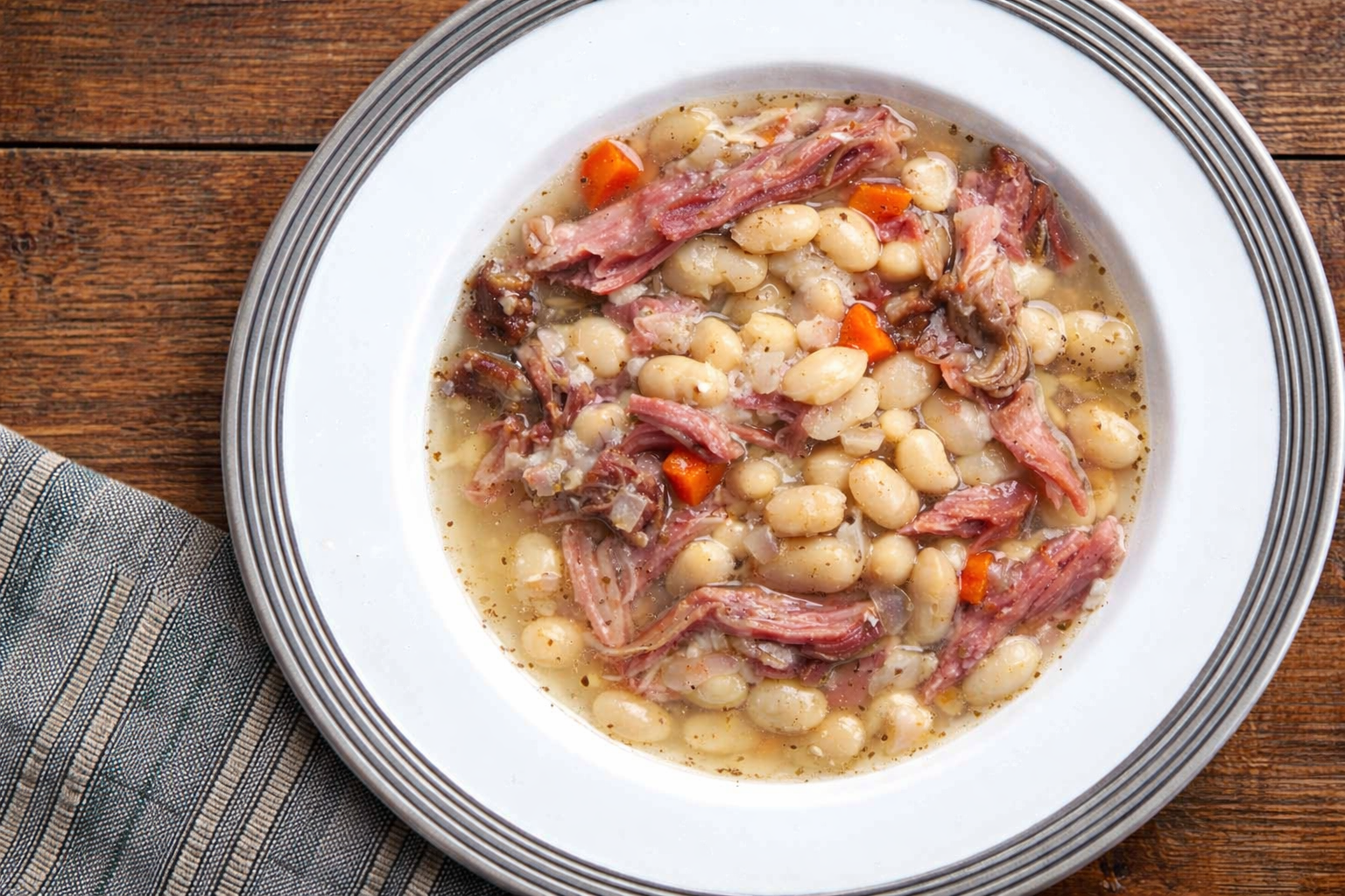 A classic winter pot of comfort, ham and bean soup grew out of practical kitchens where nothing was wasted and everything was stretched. Beans simmered low and slow with a smoked ham bone and a good stock become something far greater than their parts… thick, hearty, and quietly luxurious. As it cooks, the broth turns silky and deep, the beans soften into cream, and the whole pot takes on that steady, old-fashioned savor that feels like it has always existed.